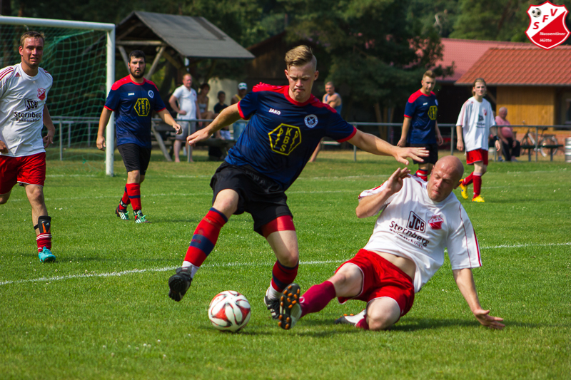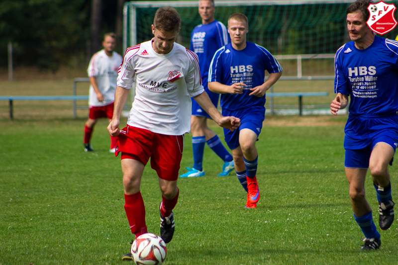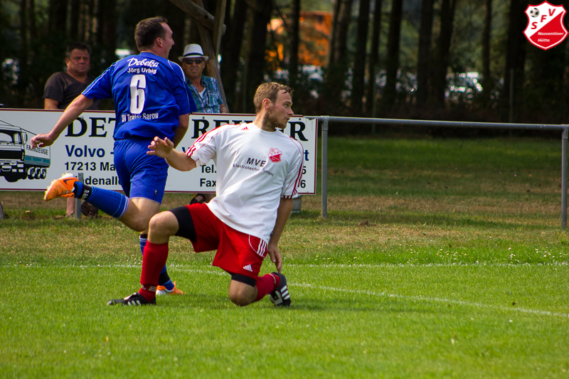 Nach den Pokalerfolgen der Vorwoche starteten beide Männermannschaften des SFV Nossentiner Hütte überzeugend in die aktuelle Ligasaison. Im „Vorspiel" hatte der SFV II den SV Alt Schwerin zu Gast. Am Ende einer kurzweiligen Partie gab es ein überraschend hohes, aber durchaus leistungsgerechtes 6:2 für die Heimmannschaft. Die Treffer für Hütte II erzielten Andreas Fritscher (2), Henning Muske (2), Steve Hannemann und Toni Leusch. Anschließend war die „Erste" gegen den SV Traktor Sarow gefordert, und das im wahrsten Sinne des Wortes. In den ersten 45 Minuten spielte sich die Partie weitestgehend zwischen den Strafräumen ab. Torchancen waren zunächst Mangelware. Allen Akteuren war eine für den Saisonbeginn verständliche Nervosität anzumerken. Zu Beginn der 2. Halbzeit konnte sich der SFV ein leichtes Übergewicht erarbeiten und kam so zu ersten Möglichkeiten. Es dauerte allerdings bis zur 69. Spielminute ehe die Hütter jubeln konnten. Sandy Pagel „schnappte" sich an der Mittellinie den Ball, stürmte unwiderstehlich Richtung Tor und zog aus 25 Metern unhaltbar ab. Das 2:0 war eine Co-Produktion der beiden anderen Offensivkräfte. Andy Odebrecht sah den mitgelaufenen Björn Rupprich, steckte ihm den Ball durch die Viererkette der Sarower und der bedankte sich mit einem satten Linksschuss ins Gästetor (76.). Da dem Gegner in der Schlussphase auch ein bisschen die Kräfte ausgingen, geriet der Sieg des SFV nicht mehr in Gefahr. Am kommenden Wochenende gehen beide Hütter Teams dann wieder auf Reisen. Die „Erste" gastiert beim FSV Mirow/Rechlin II und die „Zweite" muss bei der SG Zepkow ran.
