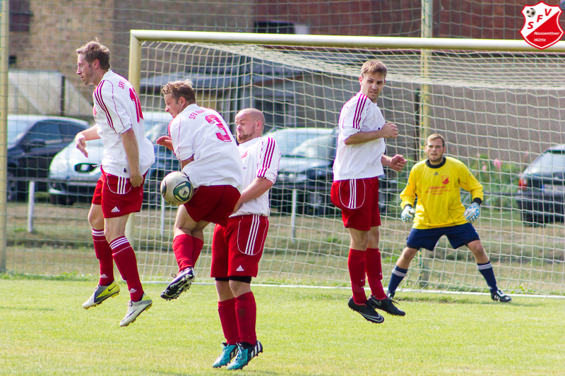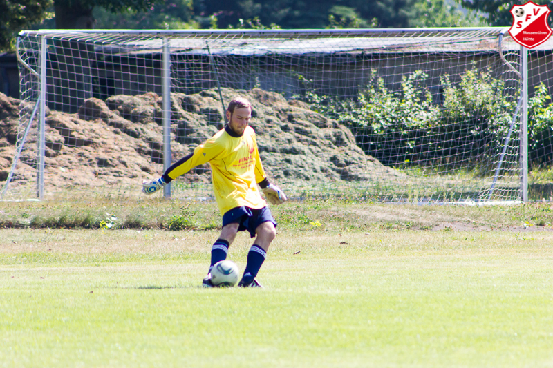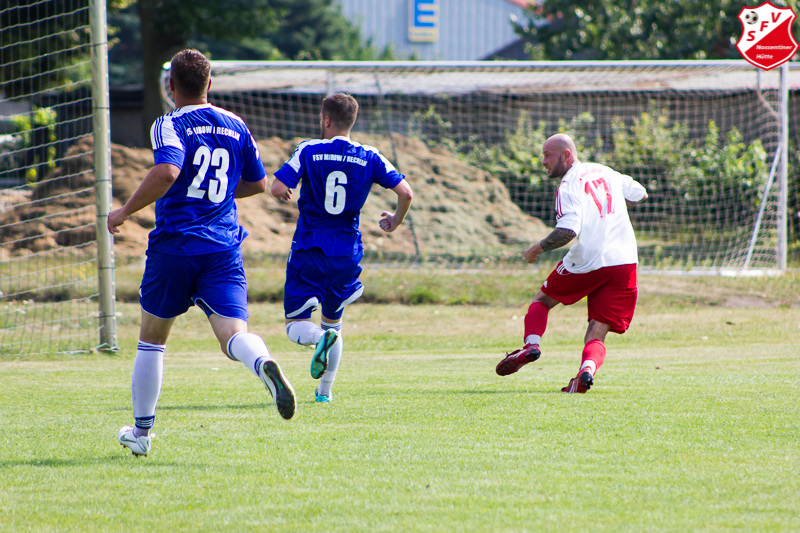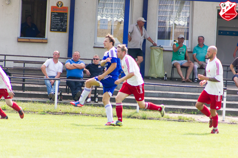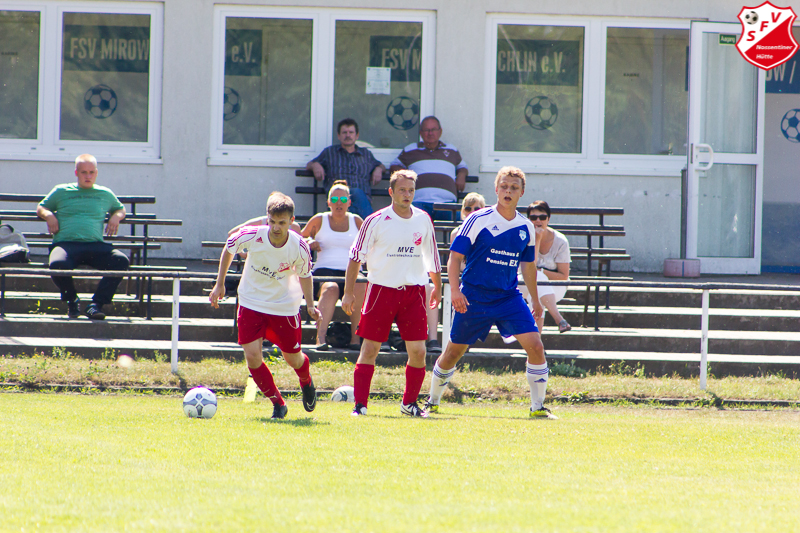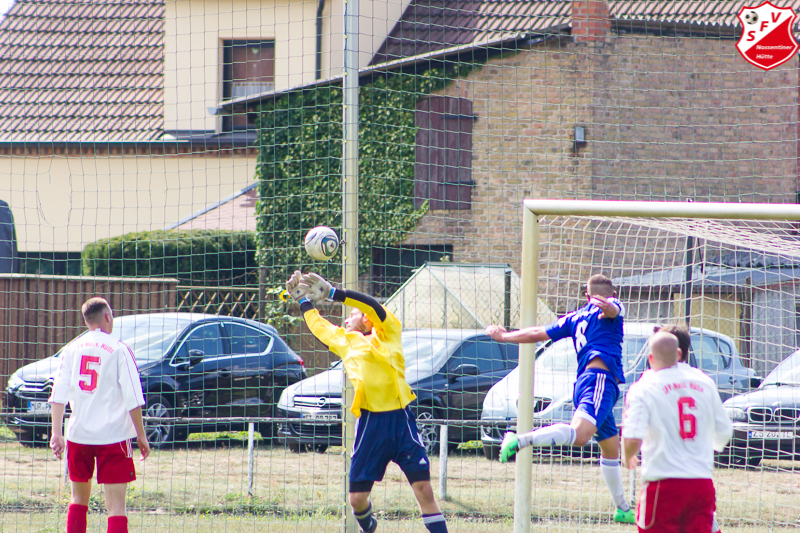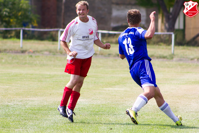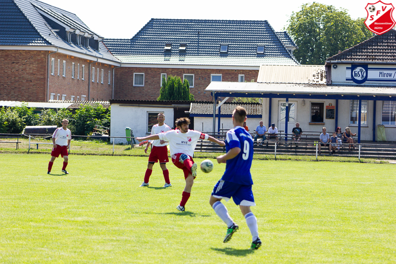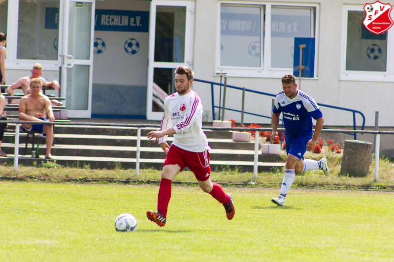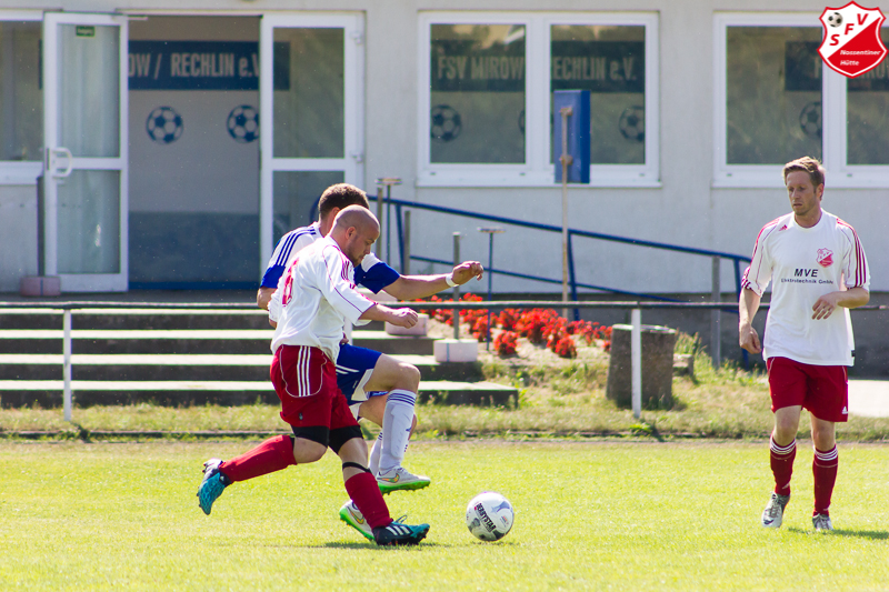 Am 2. Spieltag der Kreisoberliga musste der SFV Nossentiner Hütte beim FSV Mirow/Rechlin II antreten. In der Vorsaison konnten die Hütter in beiden Partien gegen die Kicker vom Südufer der Müritz nicht punkten. Das sollte sich diesmal ändern. Entsprechend couragiert gingen die Scheffler, Ziegler & Co ins Spiel. Die Anfangsphase dominierte der SFV eindeutig. Der Spielverlauf veränderte sich aber ab der 16. Minute. Im Anschluss an einen Eckball gab es den ersten Torjubel für die Gastgeber. Den Hüttern war es recht, dass der Schiri auf Abseits erkannte. In der Folge sahen die Zuschauer ein ausgeglichenes und sehr körperbetontes Spiel. Für Gefahr sorgten vor allem Eckbälle und Freistöße auf beiden Seiten. So auch in der 45. Minute. Den von Andy Odebrecht scharf getretenen Freistoß konnte der Mirower Keeper nur abklatschen lassen, Björn Rupprich reagierte am schnellsten und es stand 1:0 für Hütte. Als einige Spieler in Gedanken schon in der Kabine waren (45. +2) gab es noch einen „ruhenden Ball", diesmal für die Platzbesitzer. Das Resultat war ein Treffer aus dem Kuriositäten-Kabinett. Michael Thederan schlug den Ball (fast von der Mittellinie) hoch vors Tor und da die Hütter Defensive die „Zuständigkeit" nicht klären konnte, landete er im Netz. Nach der Halbzeitanalyse von Trainer Kay-Uwe Kurth kamen die Spieler des SFV wie ausgewechselt auf den Platz zurück. Waren es im ersten Durchgang vorwiegend lange Bälle auf die schnellen Spitzen, lief das Spielgerät jetzt schnell und flach durchs Mittelfeld. So auch in der 49. Spielminute: Björn Rupprich wird auf der linken Außenbahn auf die Reise geschickt, spielt auf den rechts mitgelaufenen Andy Odebrecht, der mit all seiner Routine das Siegtor erzielt. Am Ende einer spannenden Partie beschrieb die Aussage eines Spielers den guten Geist in der Hütter Truppe sehr treffend: „In der letzten Saison hätten wir so ein Spiel wahrscheinlich noch verloren!"