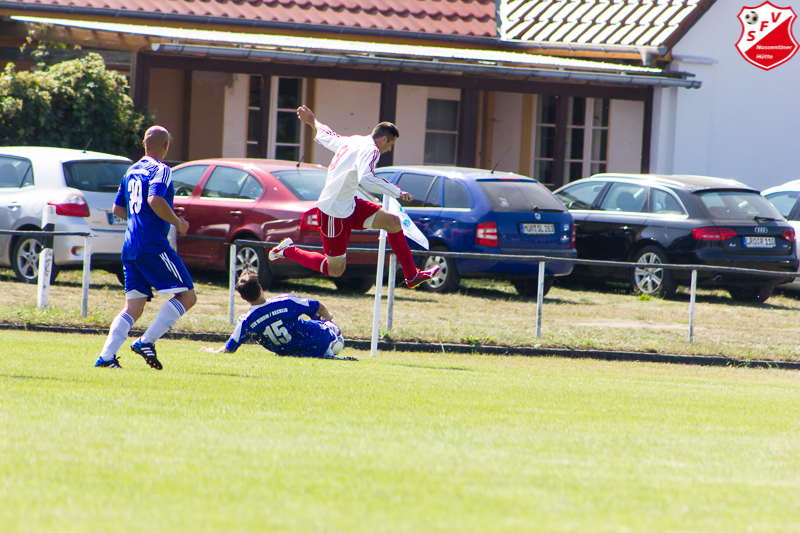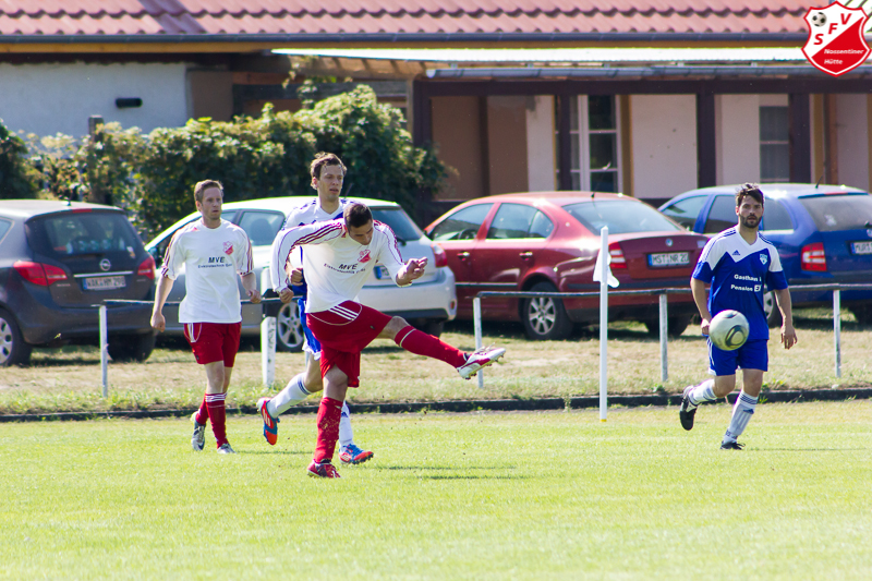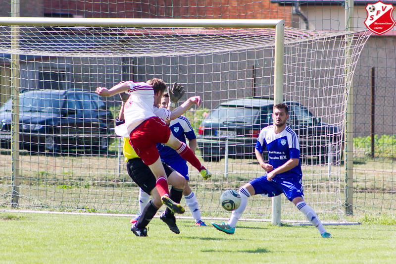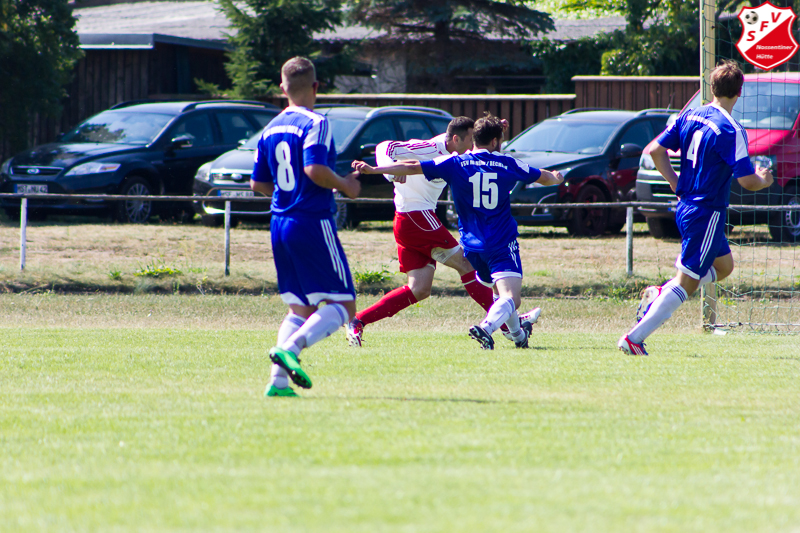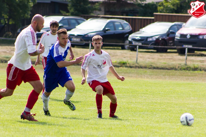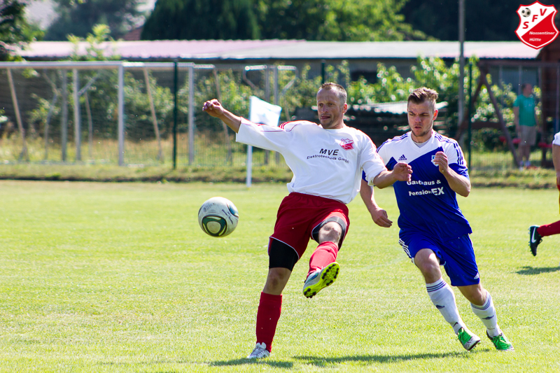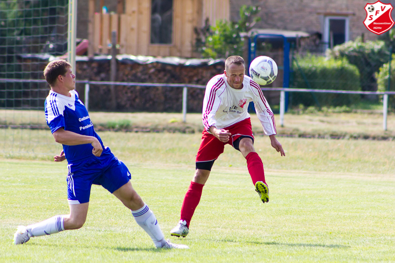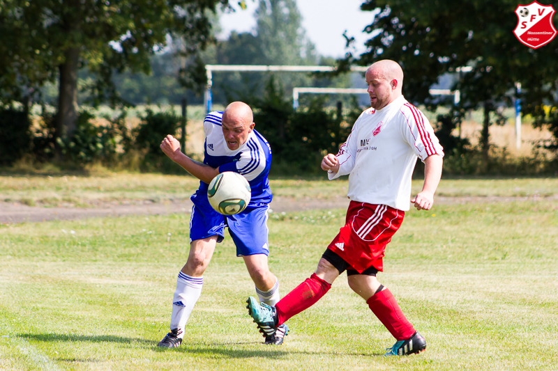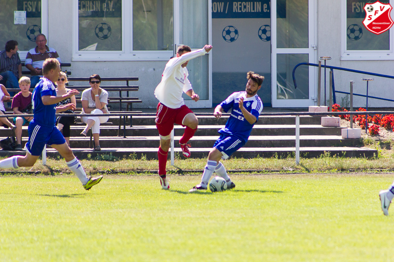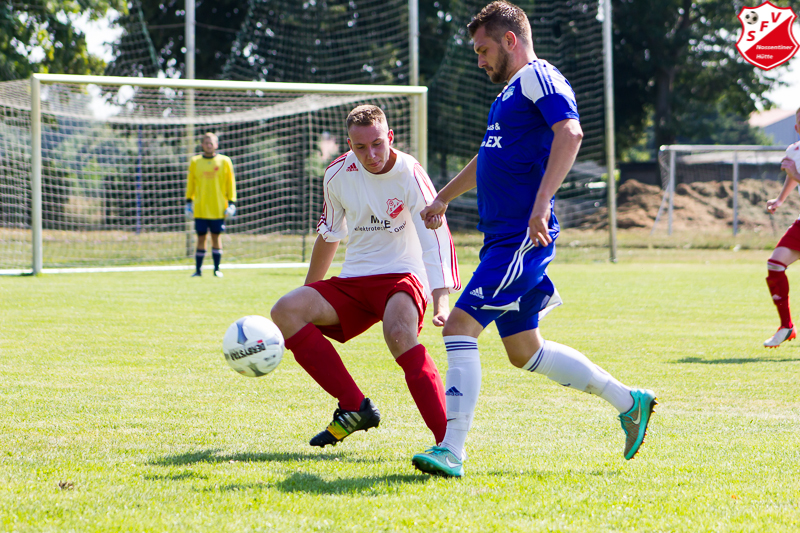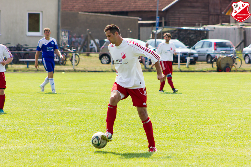 Am 2. Spieltag der Kreisoberliga musste der SFV Nossentiner Hütte beim FSV Mirow/Rechlin II antreten. In der Vorsaison konnten die Hütter in beiden Partien gegen die Kicker vom Südufer der Müritz nicht punkten. Das sollte sich diesmal ändern. Entsprechend couragiert gingen die Scheffler, Ziegler & Co ins Spiel. Die Anfangsphase dominierte der SFV eindeutig. Der Spielverlauf veränderte sich aber ab der 16. Minute. Im Anschluss an einen Eckball gab es den ersten Torjubel für die Gastgeber. Den Hüttern war es recht, dass der Schiri auf Abseits erkannte. In der Folge sahen die Zuschauer ein ausgeglichenes und sehr körperbetontes Spiel. Für Gefahr sorgten vor allem Eckbälle und Freistöße auf beiden Seiten. So auch in der 45. Minute. Den von Andy Odebrecht scharf getretenen Freistoß konnte der Mirower Keeper nur abklatschen lassen, Björn Rupprich reagierte am schnellsten und es stand 1:0 für Hütte. Als einige Spieler in Gedanken schon in der Kabine waren (45. +2) gab es noch einen „ruhenden Ball", diesmal für die Platzbesitzer. Das Resultat war ein Treffer aus dem Kuriositäten-Kabinett. Michael Thederan schlug den Ball (fast von der Mittellinie) hoch vors Tor und da die Hütter Defensive die „Zuständigkeit" nicht klären konnte, landete er im Netz. Nach der Halbzeitanalyse von Trainer Kay-Uwe Kurth kamen die Spieler des SFV wie ausgewechselt auf den Platz zurück. Waren es im ersten Durchgang vorwiegend lange Bälle auf die schnellen Spitzen, lief das Spielgerät jetzt schnell und flach durchs Mittelfeld. So auch in der 49. Spielminute: Björn Rupprich wird auf der linken Außenbahn auf die Reise geschickt, spielt auf den rechts mitgelaufenen Andy Odebrecht, der mit all seiner Routine das Siegtor erzielt. Am Ende einer spannenden Partie beschrieb die Aussage eines Spielers den guten Geist in der Hütter Truppe sehr treffend: „In der letzten Saison hätten wir so ein Spiel wahrscheinlich noch verloren!"