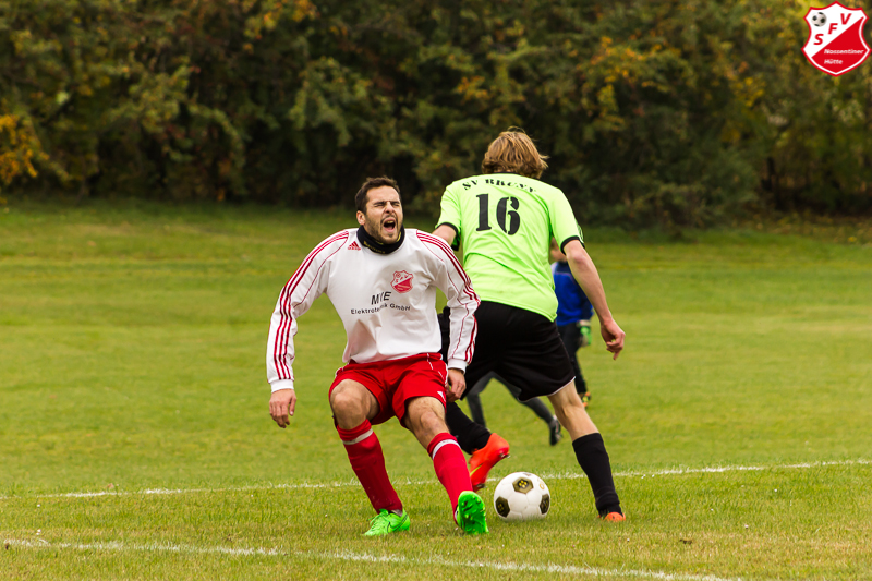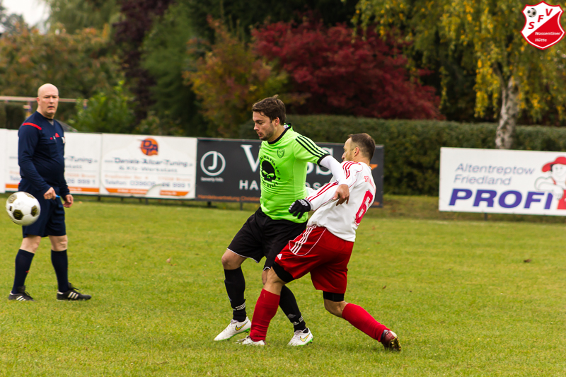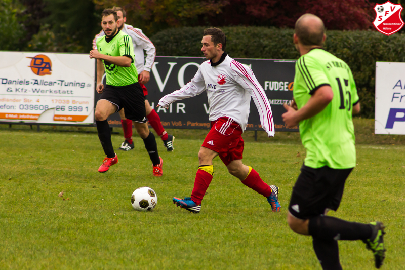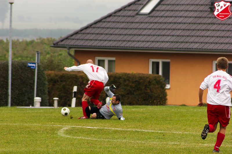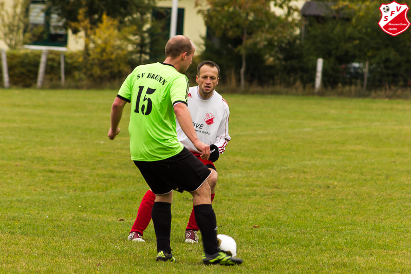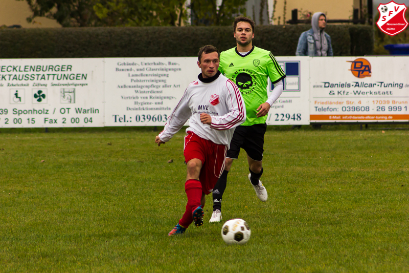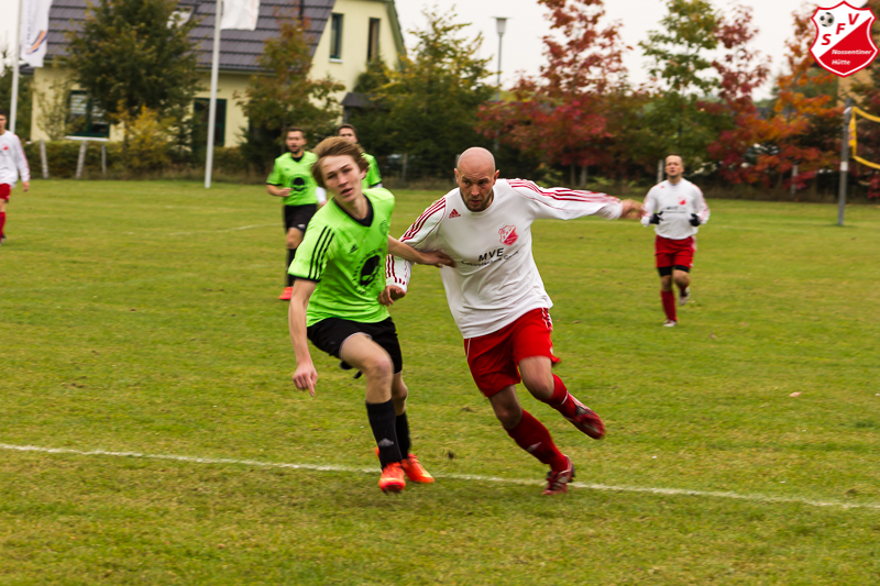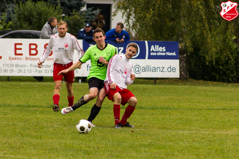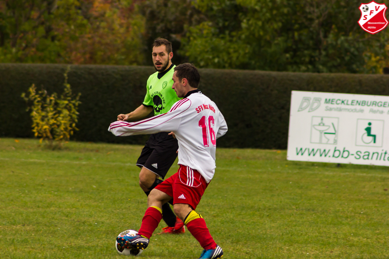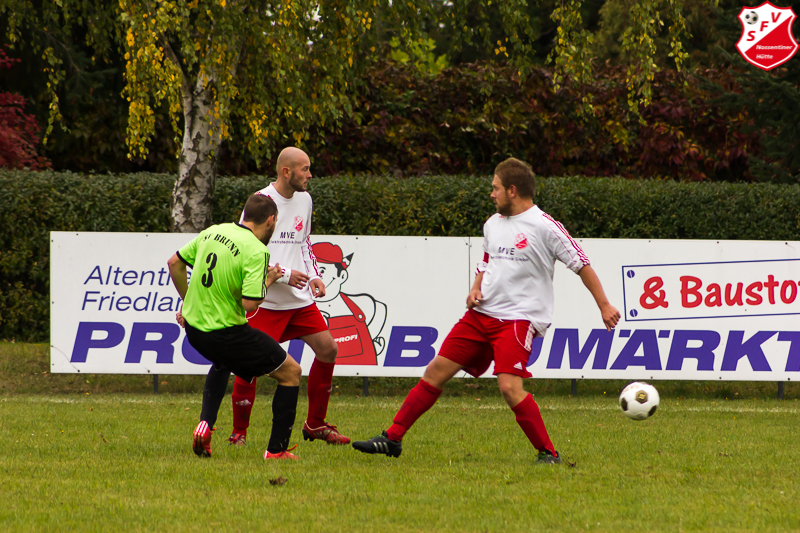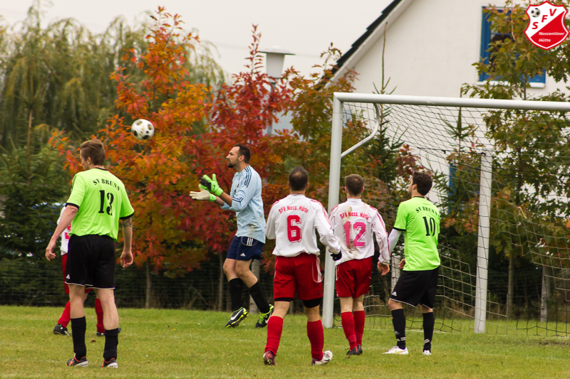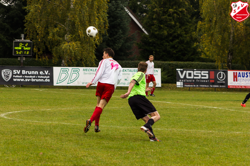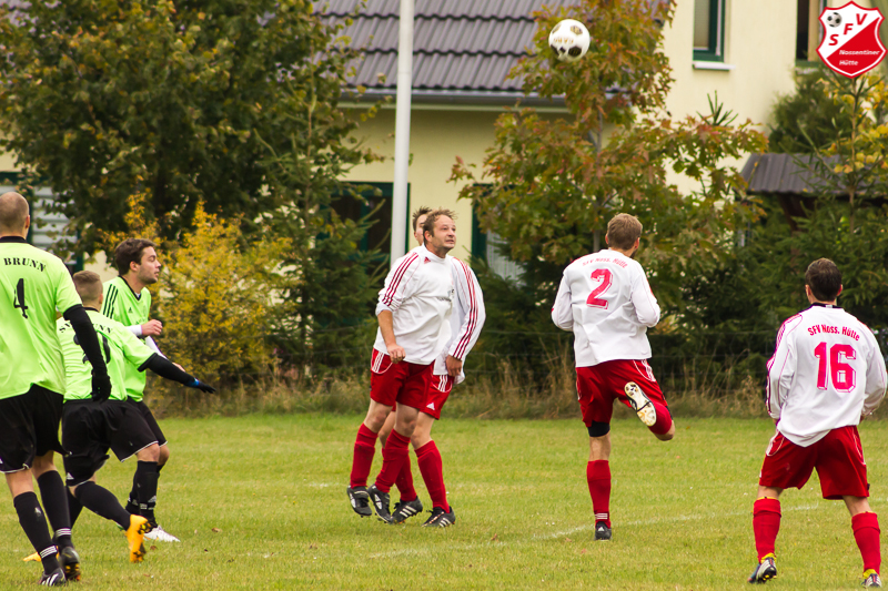 Am 8. Spieltag der Kreisoberliga kam es zum Aufeinandertreffen des SV Brunn mit dem bis dato verlustpunktfreien SFV Nossentiner Hütte. Nach dem Spiel mussten die Hütter konstatieren: Sie hatten gegen den bisher stärksten Widersacher 3:2 verloren und merkten, dass sich keine Niederlage gut anfühlt. In einem ausgeglichenen Spiel wurden die Hütter aufgrund der besseren Spielanlage in der ersten Halbzeit ihrer Favoritenrolle gerecht. Gut gestaffelt lief der Ball kontrolliert durch die Reihen, der Gegner wurde beschäftigt und versuchte über gelegentliche Konter zum Erfolg zu kommen. Das 1:0 für die Hütter gab es in der 16. Minute durch Andy Odebrecht. Sebastian „Thielchen" Thiel flankte von der rechten Außenbahn, Kapitän Philipp Schult verlängerte rückwärts per Kopf und bediente den Hütter Goalgetter am langen Pfosten. In der 36. Spielminute der zweite Streich von Andy Odebrecht. Nachdem er sich auf der rechten Seite energisch durchgesetzt hatte ging er unwiderstehlich in den Strafraum der Brunner, legte sich den Ball auf seinen starken „Linken" und vollendete unhaltbar. Anlässlich der Spitzenpartie gab es in der Pause die Auslosung im Kreispokal. Die Hütter erfuhren nebenbei, dass sie im Viertelfinale (21./22.11.) Heimrecht gegen Motor/Süd Neubrandenburg haben. Die Anfangsphase des zweiten Durchgangs bestimmten wiederum die Hütter. Ab der 60. gaben sie das Spiel allerdings völlig unverständlich aus der Hand. Die Folge waren drei Treffer der Hausherren, frenetisch gefeiert von den zahlreichen Fans. In der 88. Minute dann der Aufreger des Spiels: Damian Gorewicz's Freistoß von der linken Seite erreicht Andy Odebrecht am langen Eck, der per Kopf für einen kurzen Jubel sorgt. Zum Entsetzen der Hütter und der verbalen Verwunderung des Trainers der Gastgeber, entschied der Neustrelitzer Referee Hank auf Abseits.