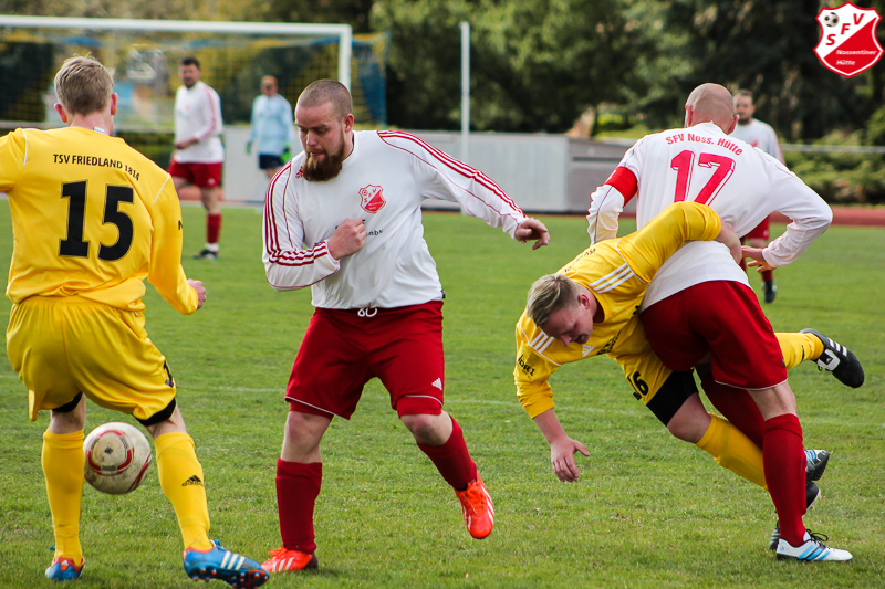 Am Ende einer überaus konzentriert geführten Partie beim TSV 1814 Friedland II landete das Team des SFV Nossentiner Hütte einen nie gefährdeten 4:0-Sieg. Konzentriert heißt, die Hütter Jungs beschäftigten sich über die gesamte Spieldauer mit der eigenen Spielweise. Eher harmlose Gastgeber machten es den Hüttern aber auch leicht, das eigene Konzept umzusetzen. Es gab eigentlich nur eine nennenswerte Möglichkeit(21.) für die Vorpommern. Die Hütter spielten von Anfang an sehr kompakt. Die Abwehr agierte sattelfest, das Umkehrspiel aus der Defensive funktionierte und vorne ging die Post ab. Und 1. Halbzeit geht inzwischen scheinbar auch. In der 10. Minute schlug der SFV das erste Mal zu. Bartek Przygorzewski bediente Damian Gorewicz auf dem linken Flügel. Dessen scharf und flach gespielter Pass erreichte am langen Pfosten Sandy Pagel und Hütte ging in Führung. Ausgangspunkt des zweiten Treffers war wieder Damian „Szumi" Gorewicz. Er schickte diesmal Sandy Pagel über links auf die Reise und der bediente Andy Odebrecht. Übrigens fehlte Szumi im letzten Heimspiel, weil er an der inoffiziellen Europameisterschaft der Feuerwehrleute im „Treppensteigen" teilnahm. Und das mit Erfolg: Er siegte in Berlin mit seinem Partner in der Klasse Ü80! - Herzlichen Glückwunsch!