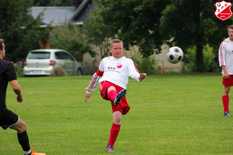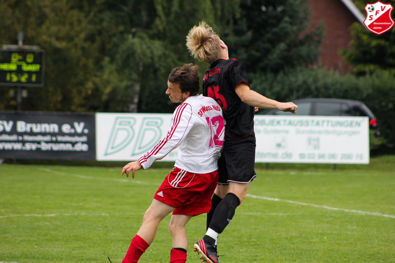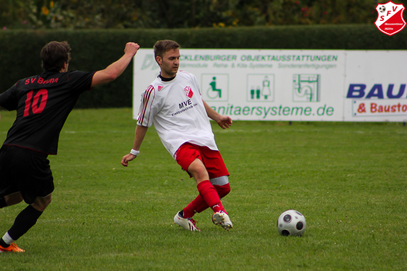 Der SFV I musste am Sonntagmorgen zum Auswärtsspiel nach Brunn reisen. Wie schon am ersten Spieltag musste man auch diesmal auf eine handvoll Spieler verzichten. So ging man mit der Taktik ins Spiel, Brunn erst einmal kommen zu lassen und evtl den ein oder anderen Konter zu setzen. Der Gastgeber konnte so ruhig von hinten aus das eigene Spiel aufbauen und wurde erst kurz vor der Mittellinie angegriffen. Brunn versuchte es häufig mit langen Bällen in die Spitze, was nur selten klappte. In der 22. Minute dann ein Freistoß aus ca. 20m, den Lüpkes klasse mit einer Hand parierte. In der 30. Minute wiederrum Freistoß für Brunn aus 17m, diesmal macht es der Schütze besser und zirkelt den Ball um die Mauer zum verdienten 1:0! Kurz vor der Pause rettet Lüpkes erneut vor einem einschussbereiten Brunner Stürmer. Von Hütte nicht viel zu sehen, 2-3 gute Spielzüge, aber keiner brachte wirklich Gefahr vorm gegnerischen Tor.