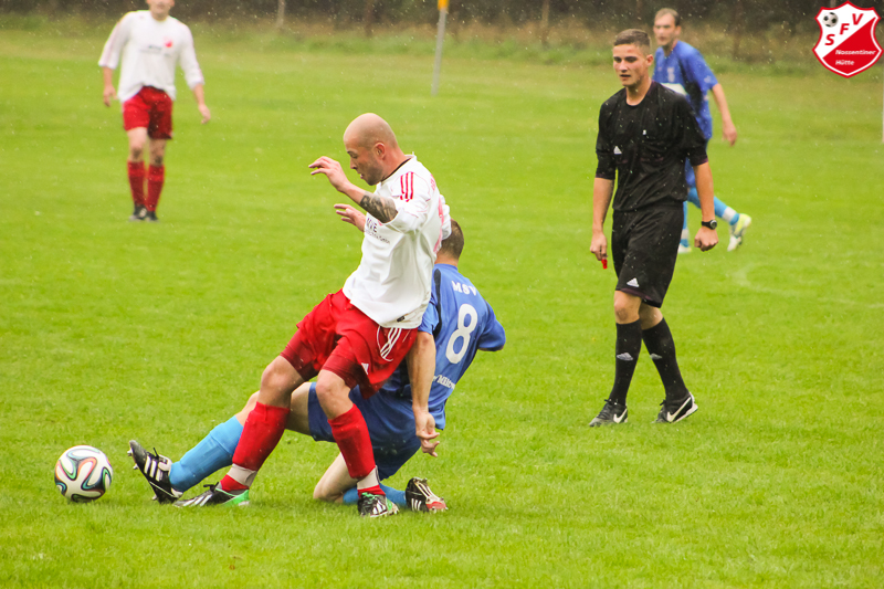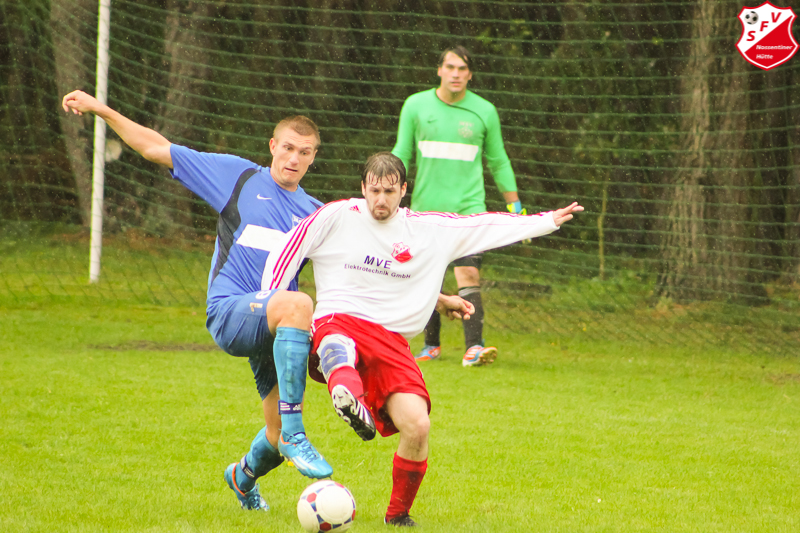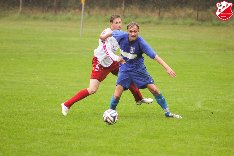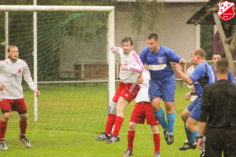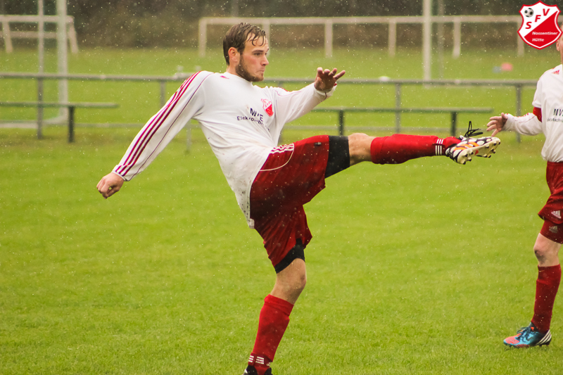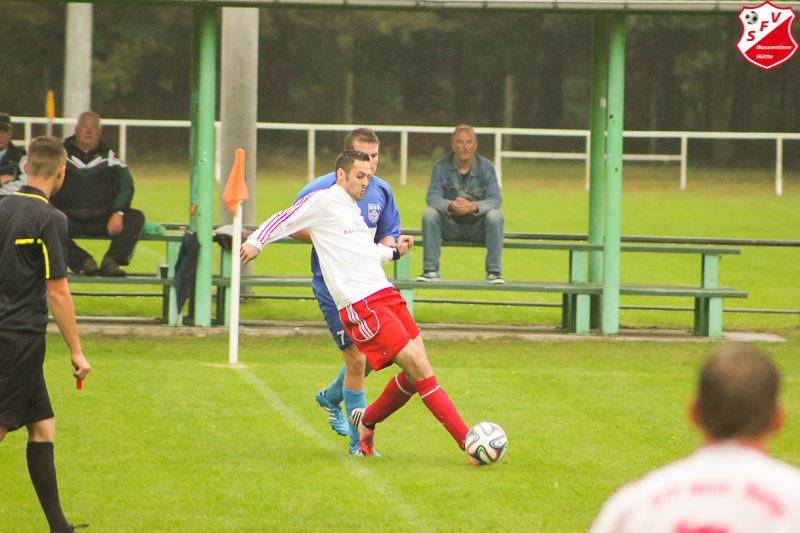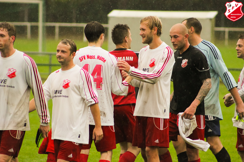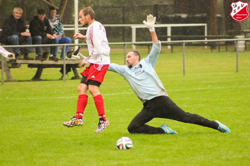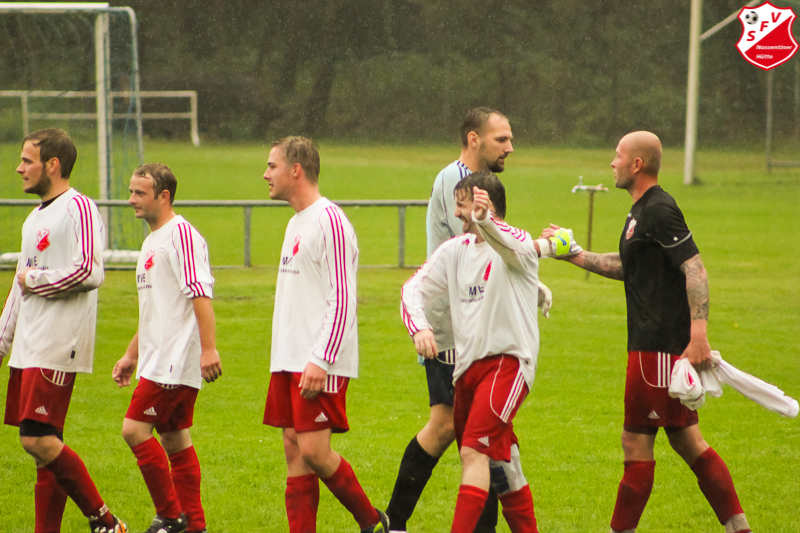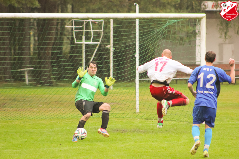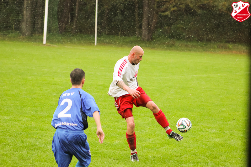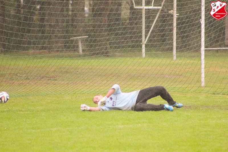 Der SFV I kann es doch noch und gewinnt sein erstes Ligaspiel nach 2 Niederlagen zum Saisonstart deutlich mit 6:0 gegen Groß Miltzow. Die frühe Führung durch Scheffler in der 3. Minute per Elfmeter spielte dem SFV dabei natürlich in Karten. Endlich war man mal in Führung und konnte so sein eigenes Spiel aufziehen. In der 25. Minute dann Elfmeter für die Gäste, nach Handspiel von Handorf im Strafraum. Der Hütter Keeper Lüpkes ahnt die Ecke und pariert im Dauerregen den flachen Schuss glänzend. Nur 7 Minuten später kann Hellmann auf 2:0 erhöhen, nachdem er von Scheffler freigespielt wurde. Miltzow fast ausschließlich nur bei Standards gefährlich, im Spielaufbau versuchen sie spätestens ab der Mittellinie lange Bälle, worauf die Hintermannschaft des SFV immer vorbereitet war. In der 33. Minute das 3:0 durch Hennecke, der aus 3m abstaubte. Hütte hat das Spiel unter Kontrolle, lässt den Ball gut laufen und zeigt auch kämpferisch eine starke Leistung bei dem schweren Geläuf.