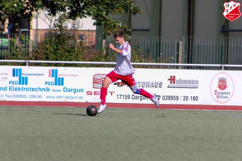 Trainer Rinke war mit dem Spiel überhaupt nicht zufrieden und machte seine Truppe nochmal heiß für die zweite Halbzeit. Dargun nach vorne relativ ungefährlich, meistens wurden sie spätestens am 16er abgefangen. Dann Einwurf an der Eckfahne für den SFV, Odebrecht wirft zu Ziegler, der lässt zurückprallen, Odebrecht bringt den Ball mit dem Außenrist auf den kurzen Pfosten, wo der Ball aufsetzt und durch den Drall auf dem Kunstrasen plötzlich im Tor landet, natürlich muss der Darguner Keeper diesen Ball halten, sei es drum, 0:2 in der 56. Minute. Nur 2 Minuten später macht Scheffler, nach Pass von Ziegler das 3:0, mit einem schönen Schuss aus der Drehung. Auch Dargun kam noch zu einem Treffer, für einen Freistoß in den Strafraum fühlt sich keiner zuständig und so kann der Darguner Stürmer den Ball irgendwie durch Handorf hindurch stochern. In der 72. Minute bringt Odebrecht eine Flanke über den Darguner Torwart hinweg, hinten läuft Clodius in den Ball hinein und befördert ihn mit einer Bauch-Oberschenkel-Brustkombination ins Tor. 84. Minute: Handorf fängt eine Ecke ab, wirft schnell auf Pagel, der hat nun noch 70m und einen Darguner vor sich, er nutzt seine Schnelligkeit aus und überläuft den Verteidiger und kann dann auch den Torwart noch mit einem plazierten Schuss überwinden. Fazit: Schwache erste Halbzeit und eine gute zweite reichen an diesem Wochenende für einen Sieg aus.