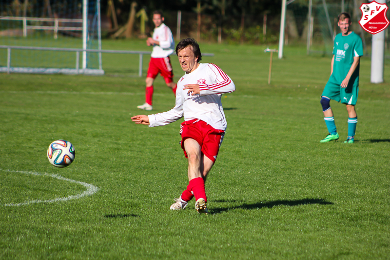 Viele versprungene Bälle auf dem sehr tiefen, relativ kurzen Platz machten es den Akteuren auf beiden Seiten schwer ins Spiel zu kommen und somit war die Anfangsphase sehr zerfahren! Hütte fungierte ähnlich wie Miltzow mit langen Bällen auf ihren Mittelstürmer, der immer wieder den Ball gut behauptete, jedoch wie auch Markus Stapel ein paar Wochen zuvor an der starken Manndeckung von Schier/Eschler verzweifelte. Mit der Taktik von Coach Weber, den Gegner schon früh in der eigenen Hälfte unter Druck zu setzen, gelang es dem SVC nach der Abtastphase schnell zu Torchancen zu kommen. Immer wieder musste der Gastgeber die fußballerischen Fähigkeiten ihres Schlussmanns auf dem holprigen Rasen testen und bei einer dieser Aktionen verletzte sich der Keeper, weil er in einen der vielen Hügel schlug. Warum dieser nun stark eingeschränkte Torwart bis zur Halbzeit weiter den Kasten hütete, bleibt das Geheimnis der Mannen aus der Müritzregion. So ist es dann Mitte der ersten Halbzeit Alex Stahlkopf, der nach einer Balleroberung im Mittelfeld den Raum erkennt und den "angeschlagenen" Schlussmann ohne Probleme überwindet. Das Tor spielte nun den Chemikern sehr in die Karten, doch Hütte zeigte sich fortan kämpferisch stark und kommt mit Leidenschaft zu gefährlichen Situationen. Zur Halbzeit bleibt es jedoch bei der knappen aber verdienten Führung!
