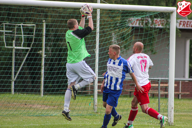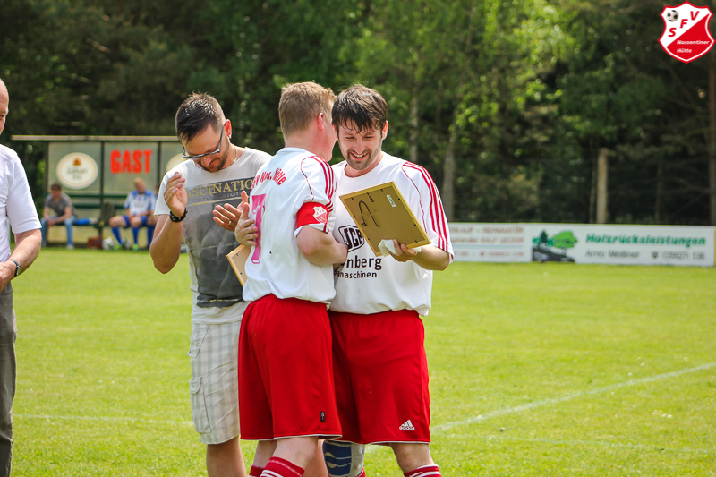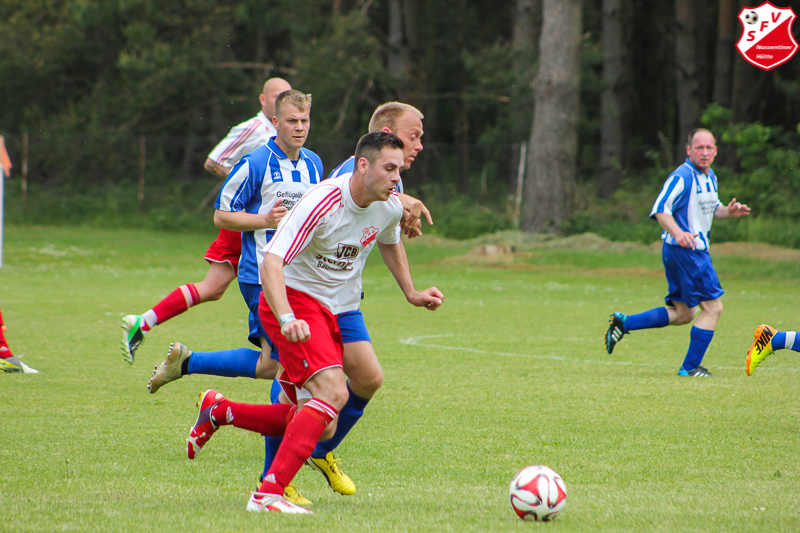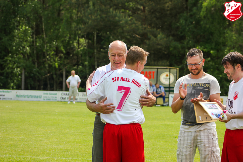 Am letzten Spieltag der Saison 2014/2015 war zum ersten Mal der SV Blau – Weiss Jarmen in Hütte zu Gast. Wir wollten das letzte Heimspiel der Saison unbedingt gewinnen und spielten eine tolle erste Halbzeit. Man kombinierte sich sehenswert auf gutem Geläuf häufig vors Jarmener Tor, doch wir ließen die ersten Möglichkeiten liegen. In der 18. Minute setzt sich dann Rupprich im Strafraum durch und erzielt die verdiente Führung. Wir spielten weiter nach vorne und konnten durch einen schnellen Doppelschlag von Odebrecht in der 34. und 37. Minute auf 3:0 erhöhen. Dieser Pausenstand schmeichelt den Gästen eher noch, der Gastgeber hätte deutlich höher führen müssen.