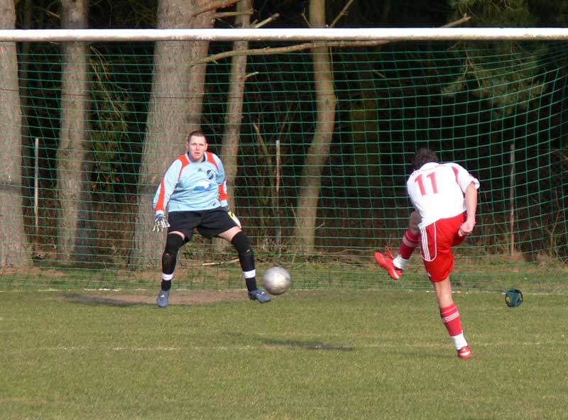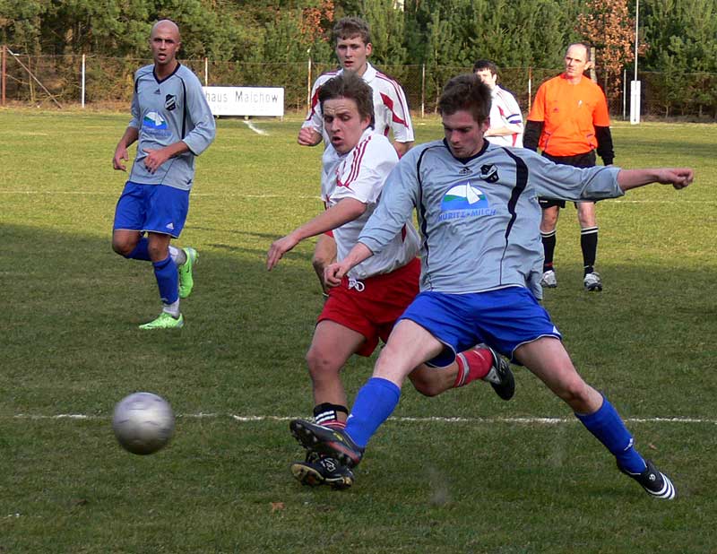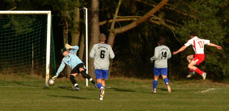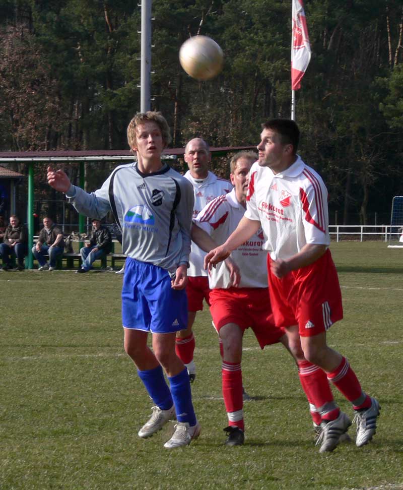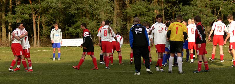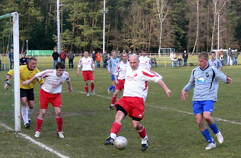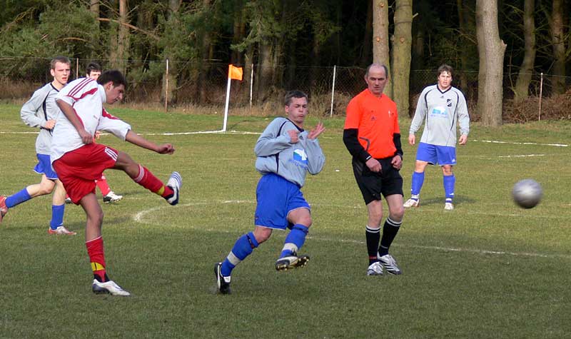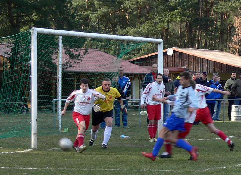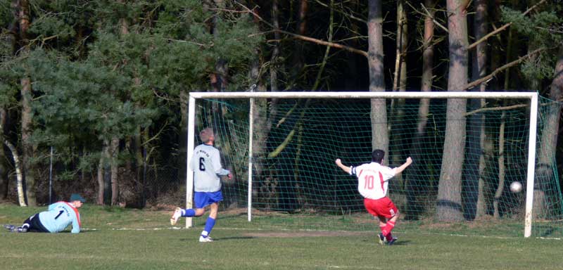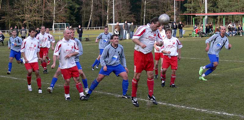 Auch im zweiten Spiel nach der Winterpause hatte sich der SFV wiederum mit einem Aufstiegskontrahenten auseinander zu setzen. Zu Gast auf der Waldsportanlage war der Tabellenzweite SV Waren 09 II. Die 1:6 Klatsche aus der Hinrunde war natürlich noch nicht vergessen. Und so hatte sich die Kaiser Elf doch einiges vorgenommen. Der SFV hatte bis auf Richter und Schnitzer zu dieser Partie alle Spieler an Bord. In der Anfangsphase schien der Gast aus Waren noch nicht auf dem Platz zu sein. Hütte machte Druck und kam zu einigen Chancen, die aber ungenutzt blieben. Nach einer halben Stunde gelang es den 09ern die Hütter Abwehr erstmalig ernsthaft zu testen, ohne jedoch wirklich gefährlich zu werden. In der zweiten Halbzeit ging es erst so weiter wie Ende der Ersten. Nach einem gefährlichen Angriff in der 58. Minute versenkte Christian Möller von halblinks das Leder zum 1:0. Ein langer Ball war von Waren etwa 25m vor dem eigenen Tor quer ins Spielfeld geköpft, genau zu C.Möller, der dann letztendlich zum 1:0 einschießen konnte. Nun drückten die Warener auf den Ausgleich. In der Folgezeit stand die Hütter Abwehr um Braun und Bielefeldt unter Dauerdruck. Die sich daraus ergebenden Konter konnten mehrfach durch Leusch und Möller jedoch nicht genutzt werden. Die Warener kamen zu vielen Chancen, vermochten aber keine zu nutzen. Mehrere Fernschüsse verfehlten nur um Zentimeter das Ziel. Eine abgerutschte Flanke und ein Kopfball konnte SFV Torwart Pinszak mit Glanzparaden über die Latte lenken. Auf beiden Seiten wurden zwei Elfmeter durch Schiri Erdmann, der nicht immer einen sicheren Eindruck machte, nicht gegeben. Dann die 92. Minute. Über die linke Seite wurde ein letzter Konter des SFV eingeleitet und der Ball hoch diagonal in den Strafraum gebracht. Der gerade eingewechselte Maik Frehse fackelte nicht lange, nahm den Ball nach dem Aufprall volley und tunnelte den 09-Torhüter zum 2:0 Endstand. Die Hütter Elf demonstrierte an diesem Tag klar und deutlich in welcher Liga sie im nächsten Jahr spielen will.
